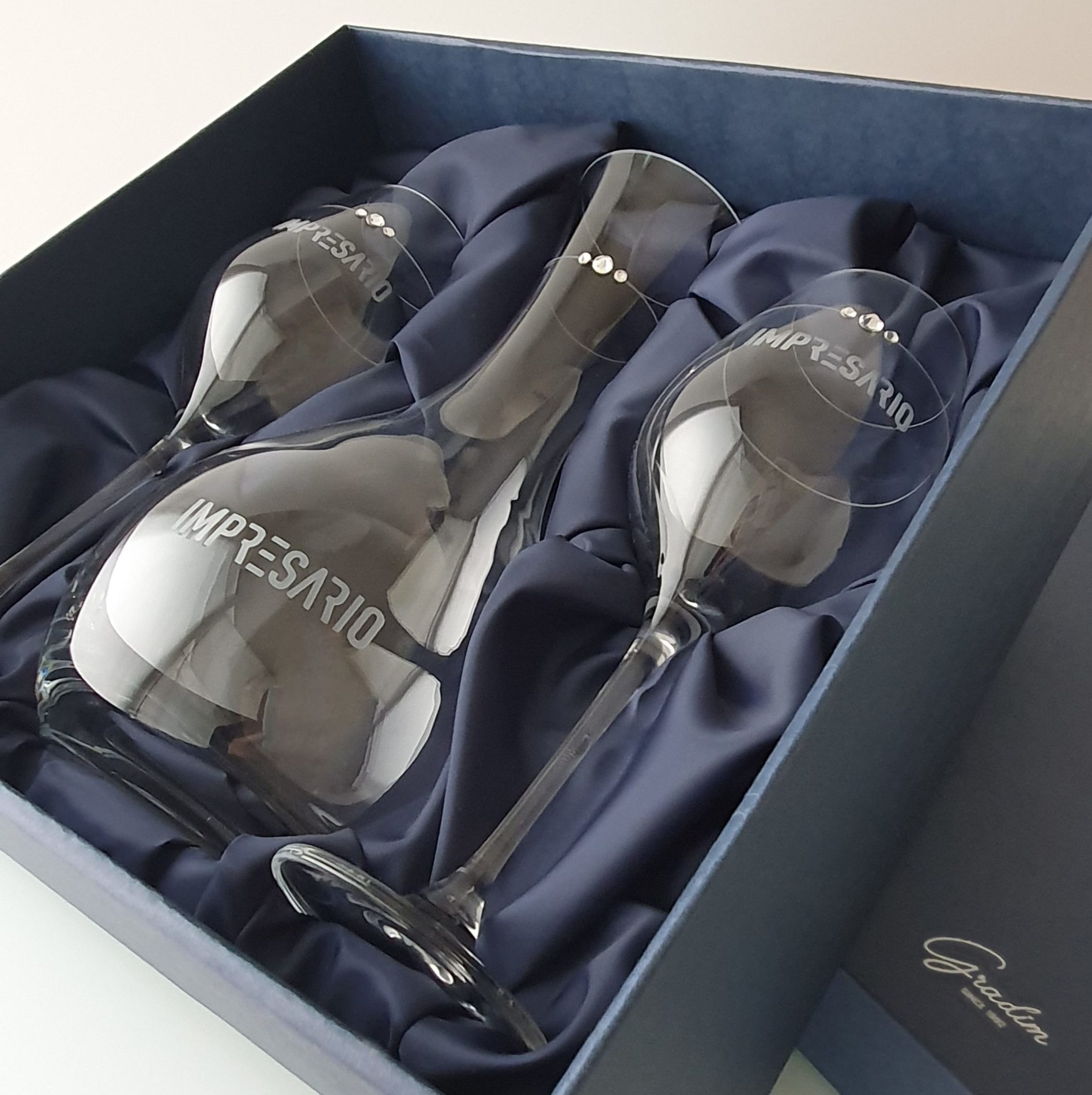 - karafa i sklenice jsou gravírované diamantovou mikrobruskou